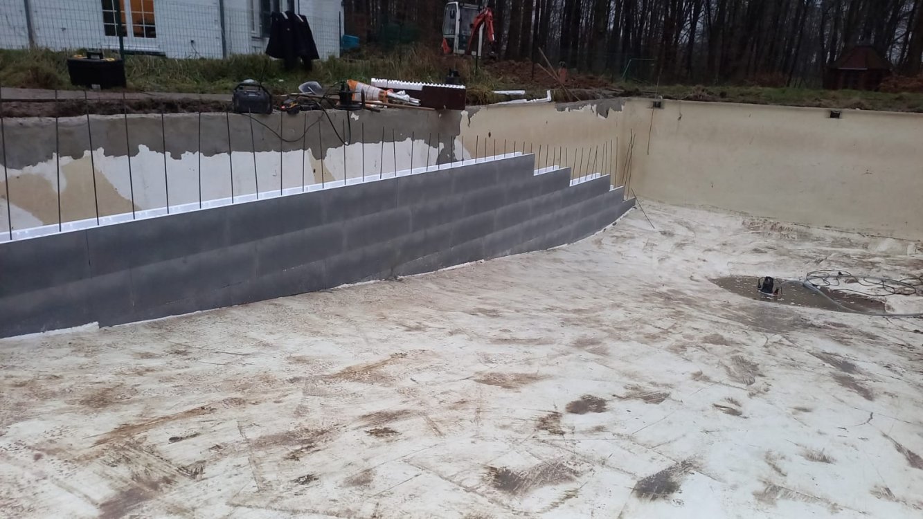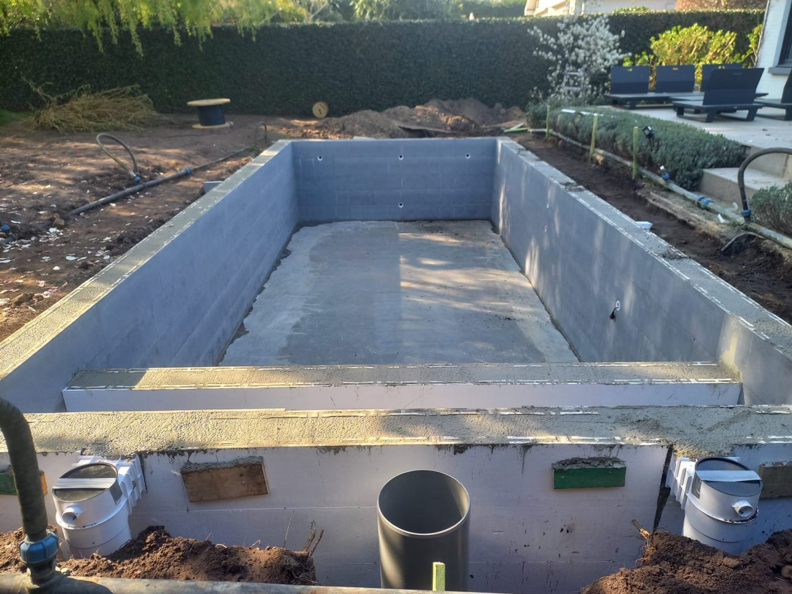 Onze aanpak is eenvoudig, efficiënt en volledig afgestemd op jouw planning.We werken met geprefabriceerde polystyreen blokken die ter plaatse snel in vorm worden gebracht en meteen voorzien zijn van de nodige wapening. Dankzij deze slimme methode bouwen we de volledige ruwbouwstructuur van het zwembad in 1 dag op. Daarna wordt het geheel gevuld met beton en zit ons werk erop. Snel, proper en altijd op maat van jouw project.